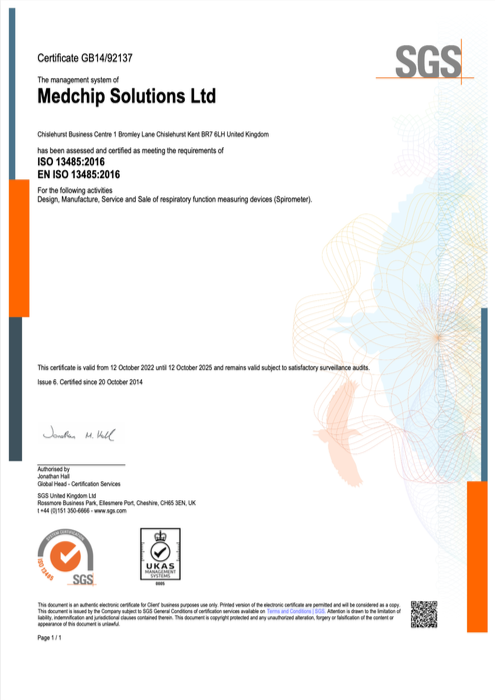 Medical Device Full Quality Assurance System Certificate GB22/00000463 - The management system of Medchip Solutions Ltd