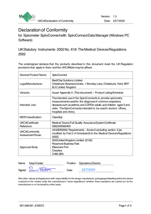 Red Declaration of Conformity SpiroConnect